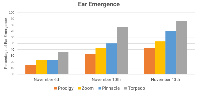 Very late maturity. In the AGF Seeds 2023 Heading Date Trial (table shown below) in Smeaton Prodigy showed very late ear emergence with great scoring compared to other late season commercial comparators.